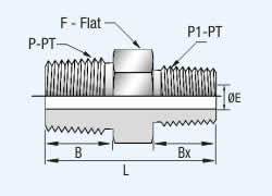 | P-PT, NPT | P1-PT, NPT | L | F | B | Bx | E | |
