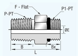 | P-PT, NPT | P1-PT, SAE | L | F | B | Bx | E | |