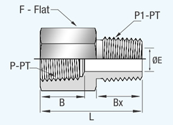 | P-PT, BSPT | P1-PT, NPT | L | F | B | Bx | E | |