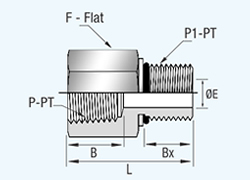 | P-PT, NPT | P1-PT, SAE | L | F | B | Bx | E | |