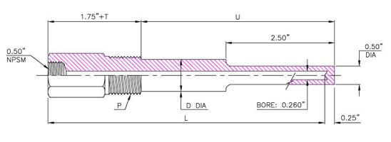 | 050TW-0250-TL-260 | 1/2" | 2-1/2" | 6" | 2" | 1/2" | 1-1/8" |