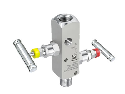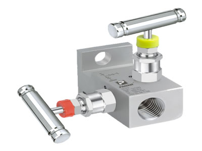 2-вентильные блоки PANAM используются для подключения импульсных линий и преобразователей давления. Эти блоки состоят из двух вентилей, что обеспечивает простую изоляцию, калибровку, отсечку и дренаж для манометров, реле давления и преобразователей давления. Эти вентильные блоки имеют прочную конструкцию и выдерживают высокое давление и температуру. Эти вентильные блоки с сальником из ПТФЭ рассчитаны на давление до 41,4 МПа при 93 С или до 27,6 МПа при 260° С . Для более высоких температур используются сальники из графита. Эти вентильные блоки сочетают функции тройника, калибровочного клапана, изолирующего клапана и фитингов в одном компактном блоке, что уменьшает количество фитингов и уменьшает необходимое для монтажа пространство.